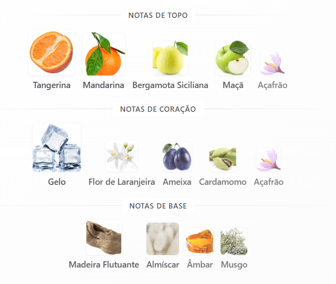 A abertura explode em luz: a doçura vibrante da tangerina se mistura à crocância suculenta da maçã, criando uma sensação quase tátil — fresca, cintilante, levemente úmida como o ar antes do amanhecer. O acorde de gelo traz um arrepio elegante, enquanto a flor de laranjeira floresce suave, etérea, como um suspiro branco na escuridão.