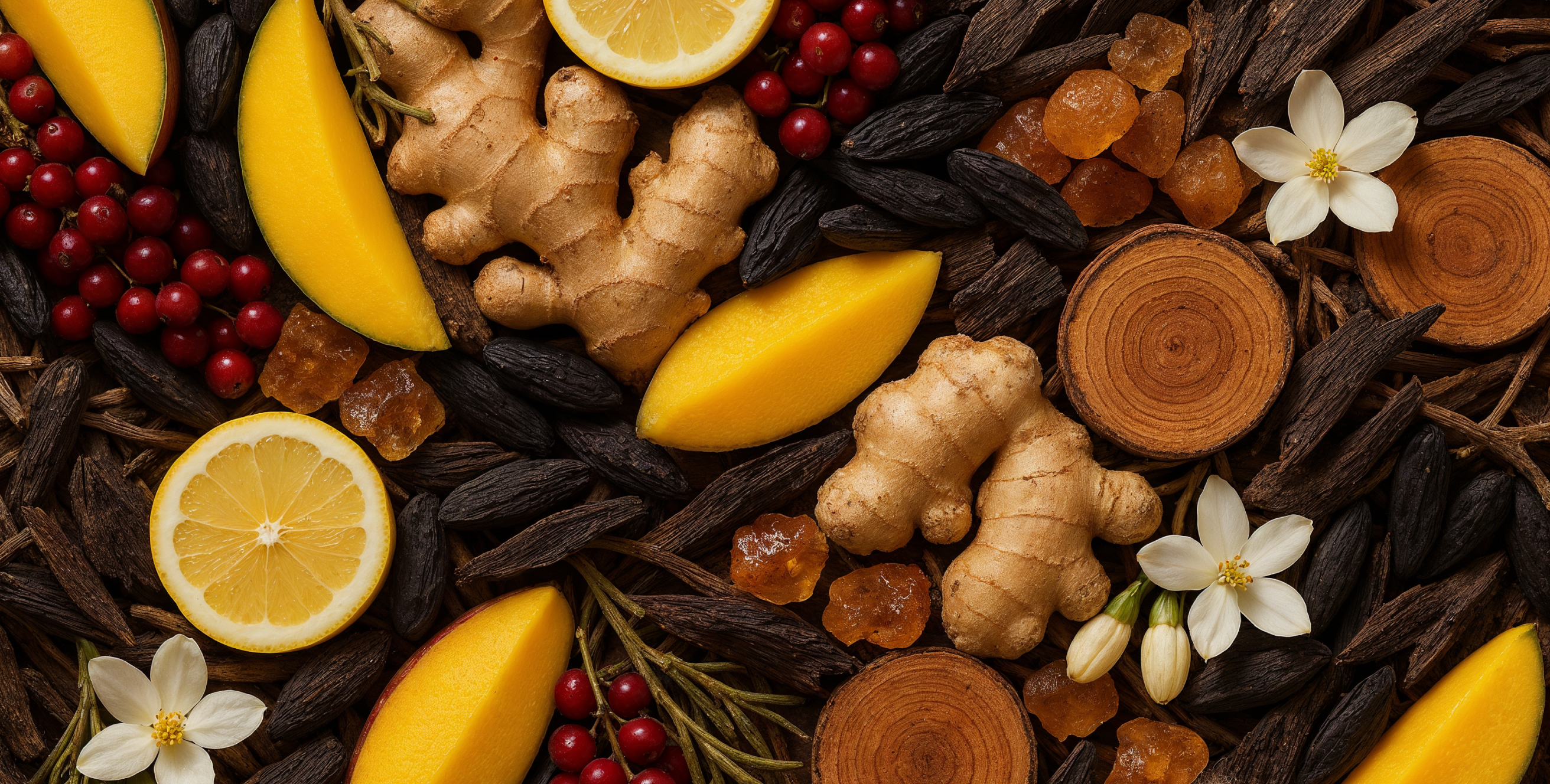 Coração: Gengibre, Noz-Moscada, Notas Saborosas, Íris
