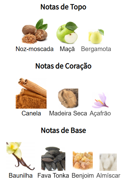 A abertura une mandarina, maçã e baunilha, criando um início marcante e envolvente. No coração, rosa, ylang-ylang e especiarias quentes adicionam profundidade e elegância. A base, com almíscar branco, sândalo e oud, deixa um rastro poderoso, fiel à perfumaria oriental.