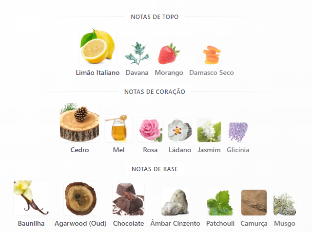 À medida que a fragrância assenta, ela se firma em camurça rica e patchouli terroso, âncoras atemporais que evocam legado, estabilidade e profundidade. Um toque de baunilha permanece ao fundo: suave, discreto e irresistivelmente quente, uma doçura sutil na medida certa para deixar uma impressão.