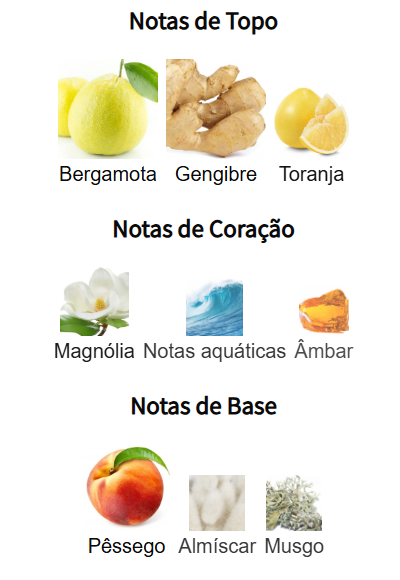 Em sua essência, esta fragrância revela uma mistura cativante de notas âmbar, aquosas e de magnólia. Esses aromas se entrelaçam harmoniosamente, evocando a sensação de uma suave brisa marítima e o perfume de flores desabrochando no ar da noite.