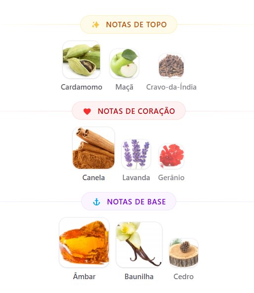 Throne Eclipse se desdobra com maçã e cravo, aprofundado por canela e lavanda, assentando em um rastro quente e âmbar de baunilha e cedro.