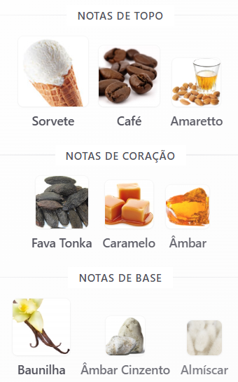 Notas principais: Amaretto, sorvete, café