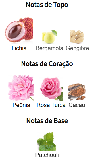 Esta é a fragrância de um momento verdadeiramente especial, feita para durar! Possui a elegância surpreendente da lichia e da rosa, equilibrada pelo toque terroso do patchouli. É leve e profundamente sensual, com um toque romântico de rosa.