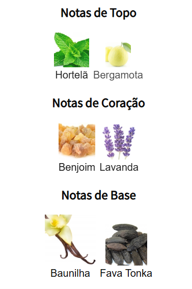 Esta fragrância âmbar aromática desperta os sentidos e revela um lado profundamente sensual. A abertura traz um frescor cítrico e mentolado vibrante, que logo se mistura à sofisticação da lavanda e ao toque adocicado do benjoim e da baunilha.