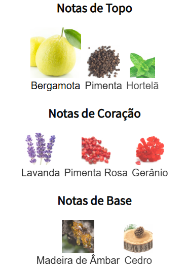 Abre com uma explosão de bergamota suculenta e pimenta picante, despertando os sentidos com uma intensidade nítida. Ao se fixar, uma mistura refinada de lavanda, madeiras secas e sutis notas resinosas cria um coração sofisticado — fresco, composto e naturalmente poderoso.