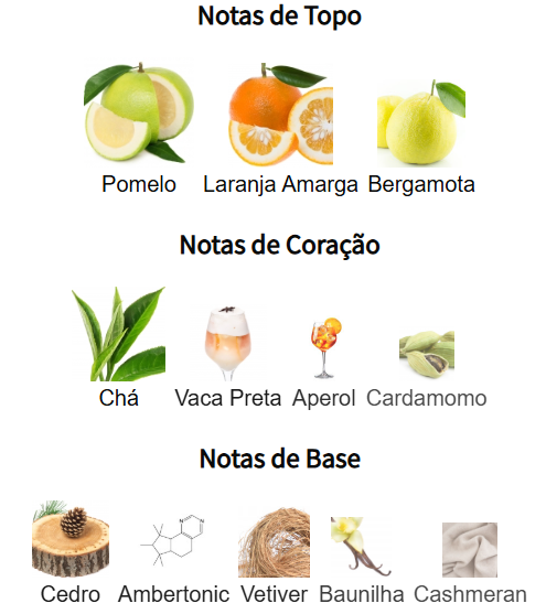 Notas de topo: Pomelo, Bergamota, Laranja Amarga
